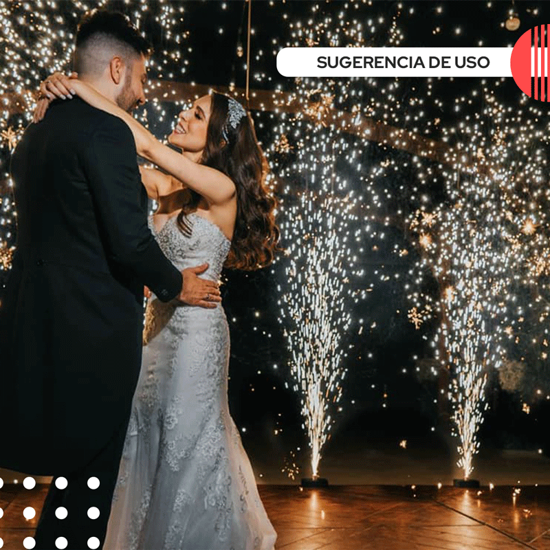 Al contratar el servicio, te incluiremos 8 chisperos del color de tu preferencia (dorados o plateados), así como el servicio de un técnico especializado, certificado por la SEDENA para su detonación durante tu evento.