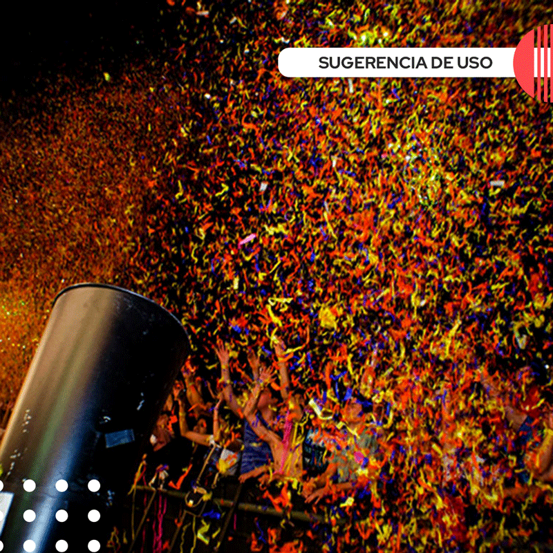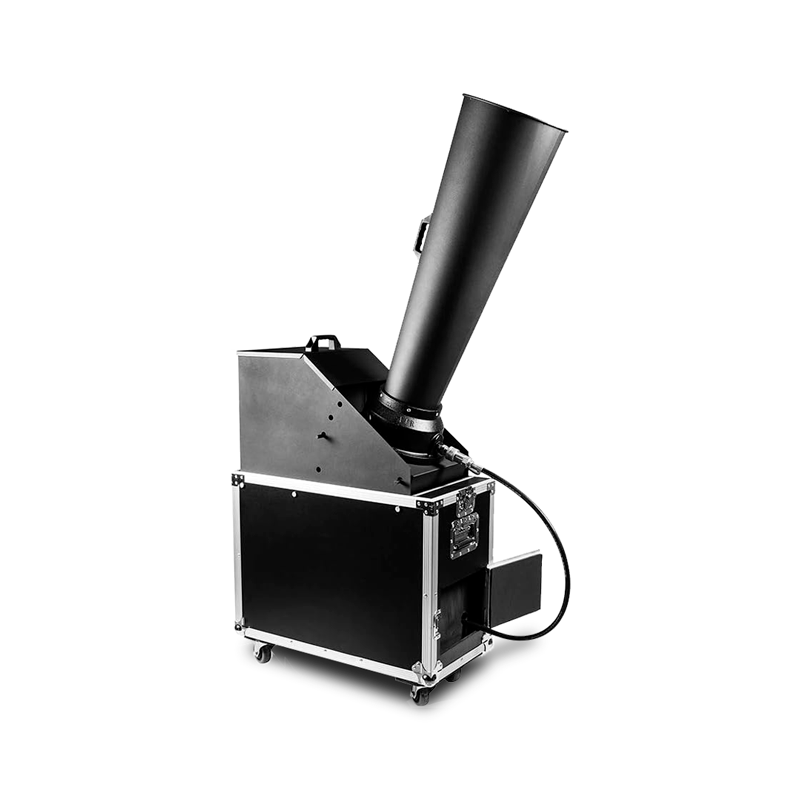 Máquina que lanza confeti, famosa por ser utilizada en los grandes conciertos y eventos deportivos. Se diseñó para espacios grandes, tales como estadios y grandes eventos al aire libre o pabellones cerrados con gran altura.